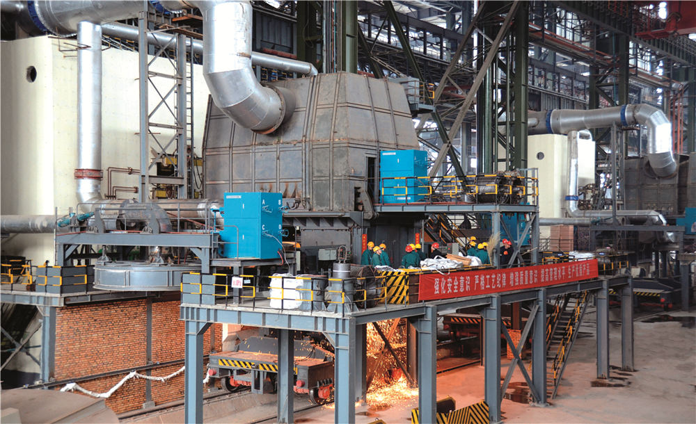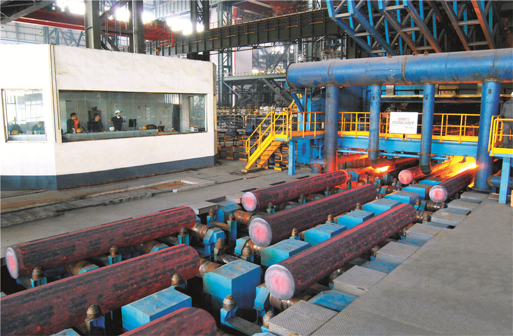 煉鋼系統(tǒng)擁有1300噸混鐵爐一座、120噸雙工位KR脫硫裝置一座、120噸頂?shù)讖?fù)吹轉(zhuǎn)爐兩座、60噸頂?shù)讖?fù)吹轉(zhuǎn)爐兩座、120噸LF精煉爐四座、120噸RH精煉爐兩座、60噸LF精煉爐四座、合金熔化爐兩座、60噸VD精煉爐兩座,全球弧形半徑最大,Φ500mm~Φ1300mm的特殊鋼大圓坯連鑄機,合金鋼小方(圓)坯連鑄機,合金鋼大方(圓)坯連鑄機(引進(jìn)瑞士康卡斯特),八機八流、七機七流、六機六流、五機五流連鑄機各一臺,具備年產(chǎn)500萬噸鋼的生產(chǎn)能力。